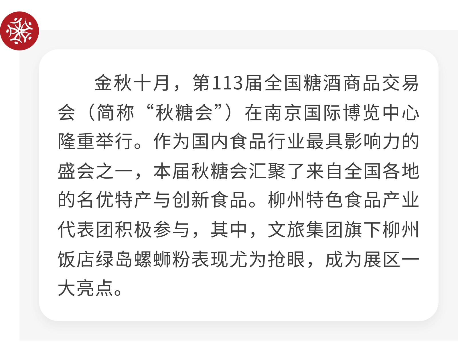 【一碗螺蛳粉,香动秋糖会】文旅集团柳州饭店绿岛螺蛳粉用实力“圈粉”