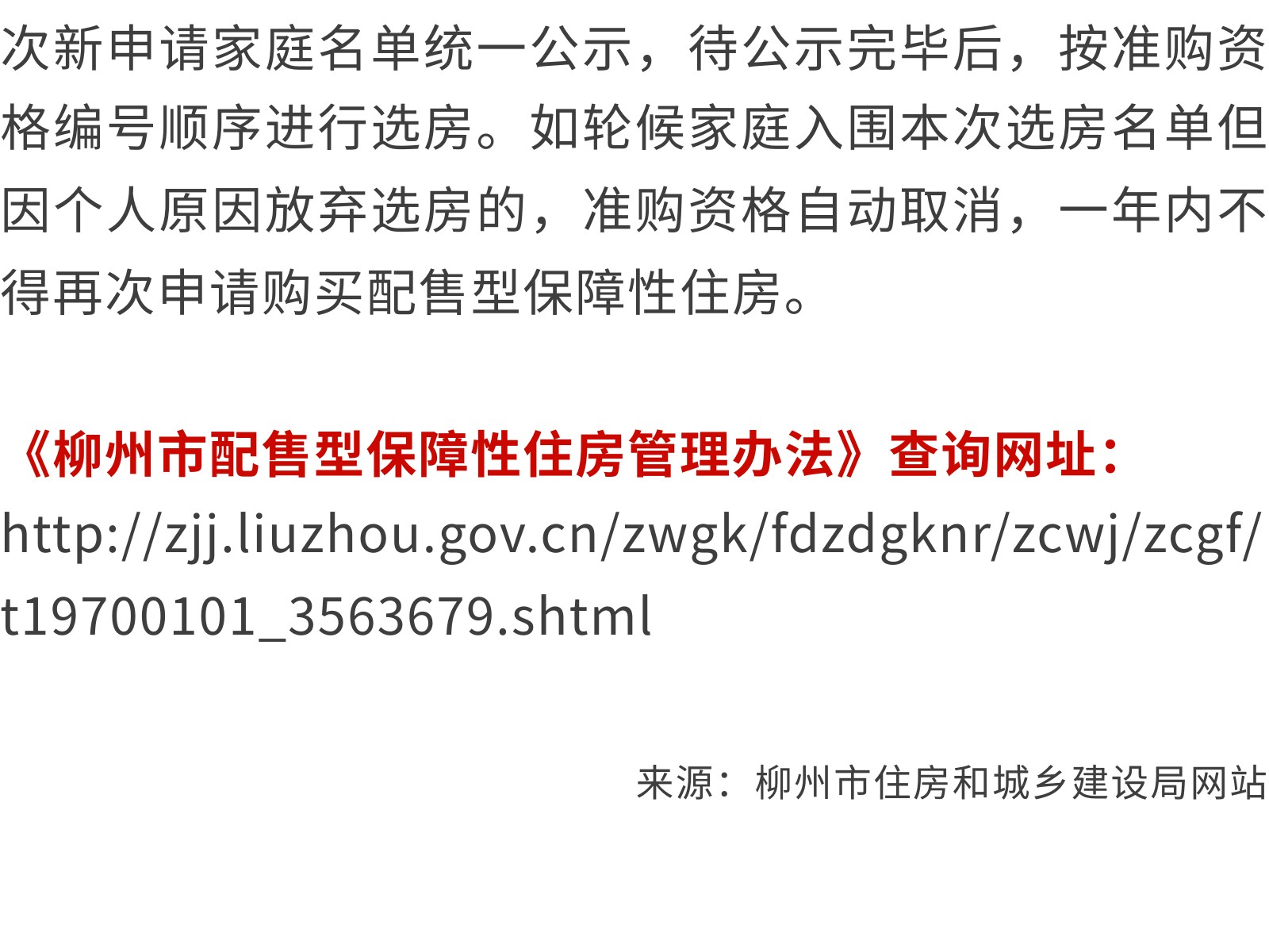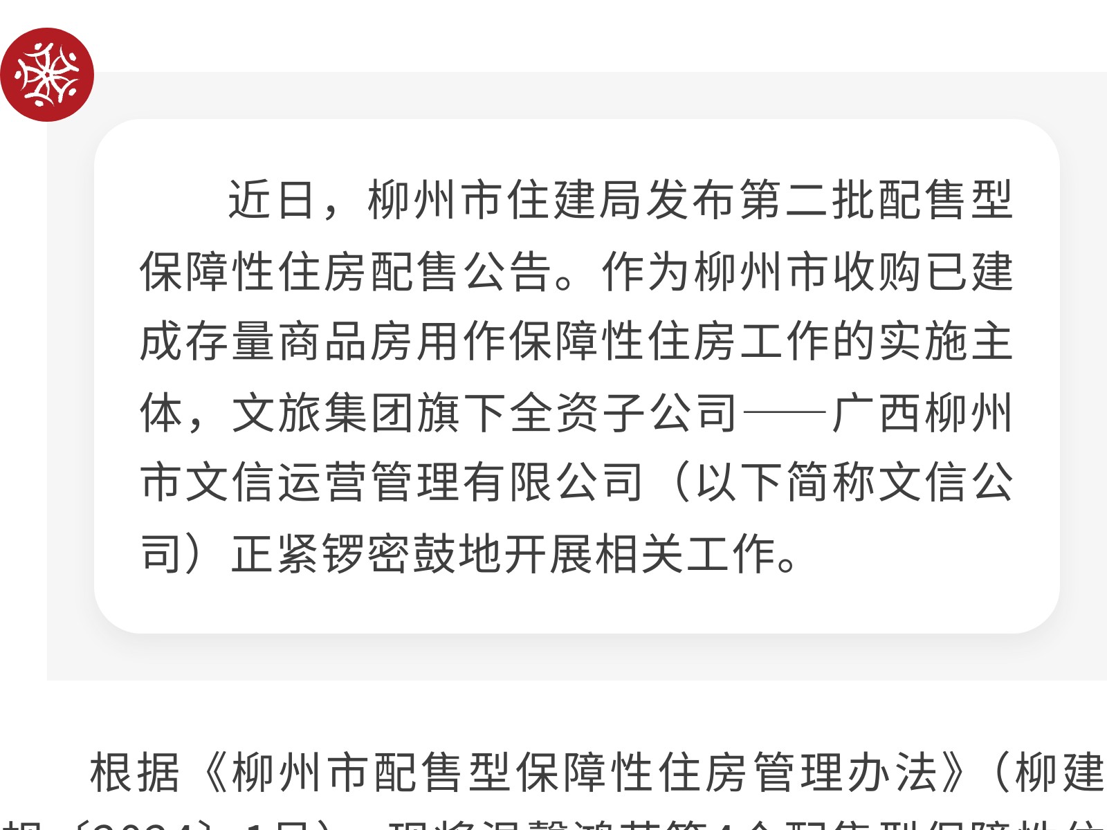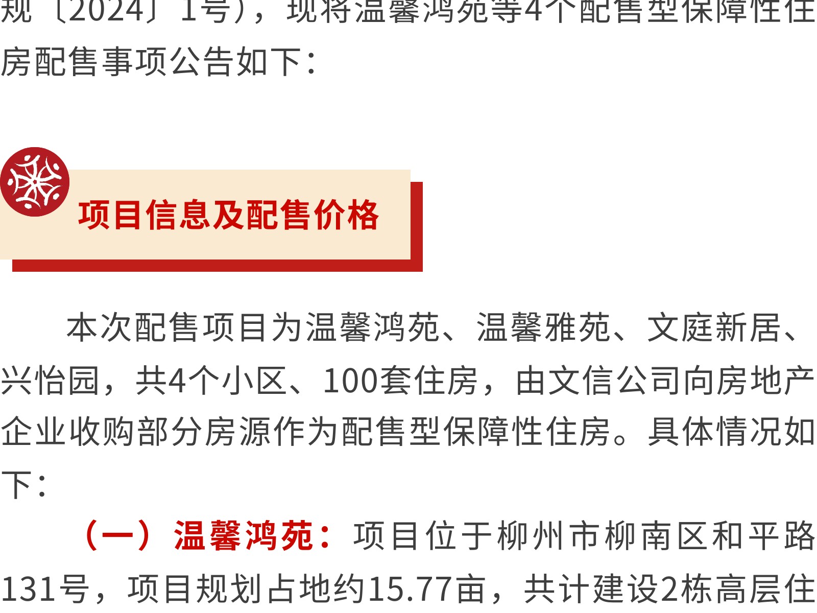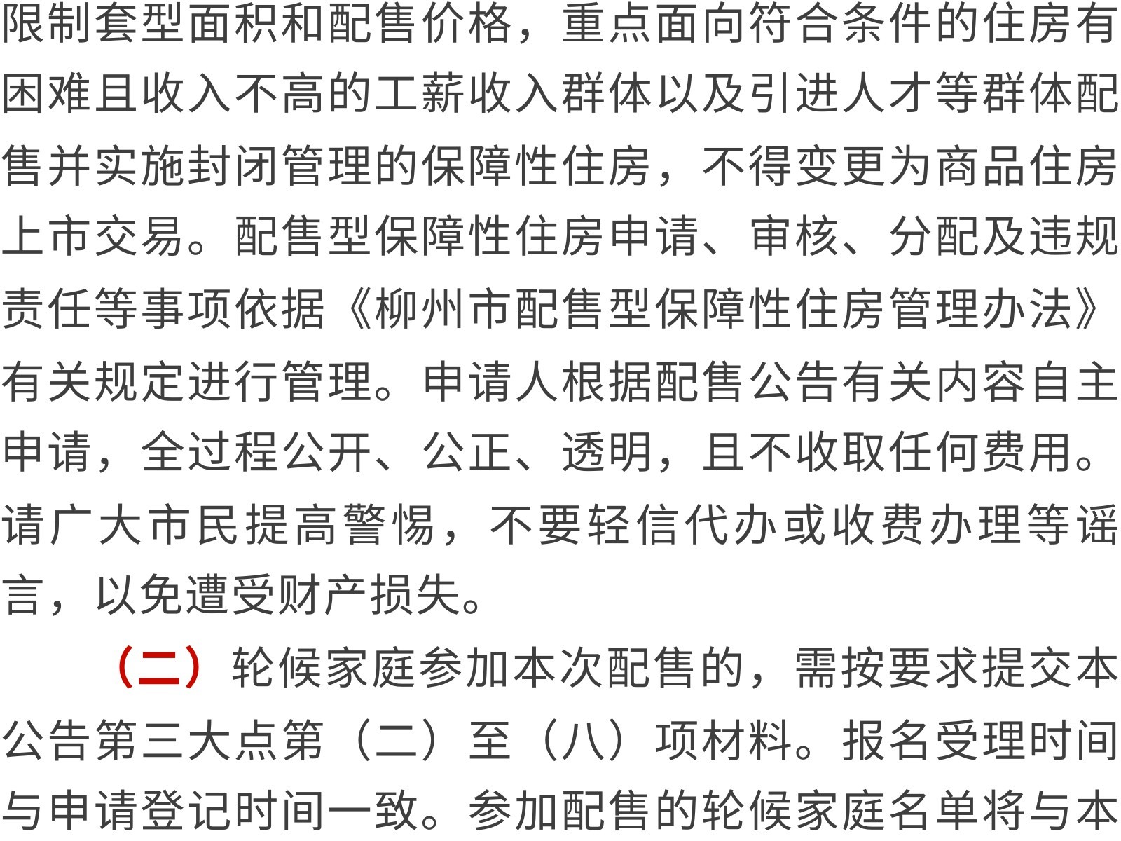 柳州市第二批配售型保障性住房配售公告