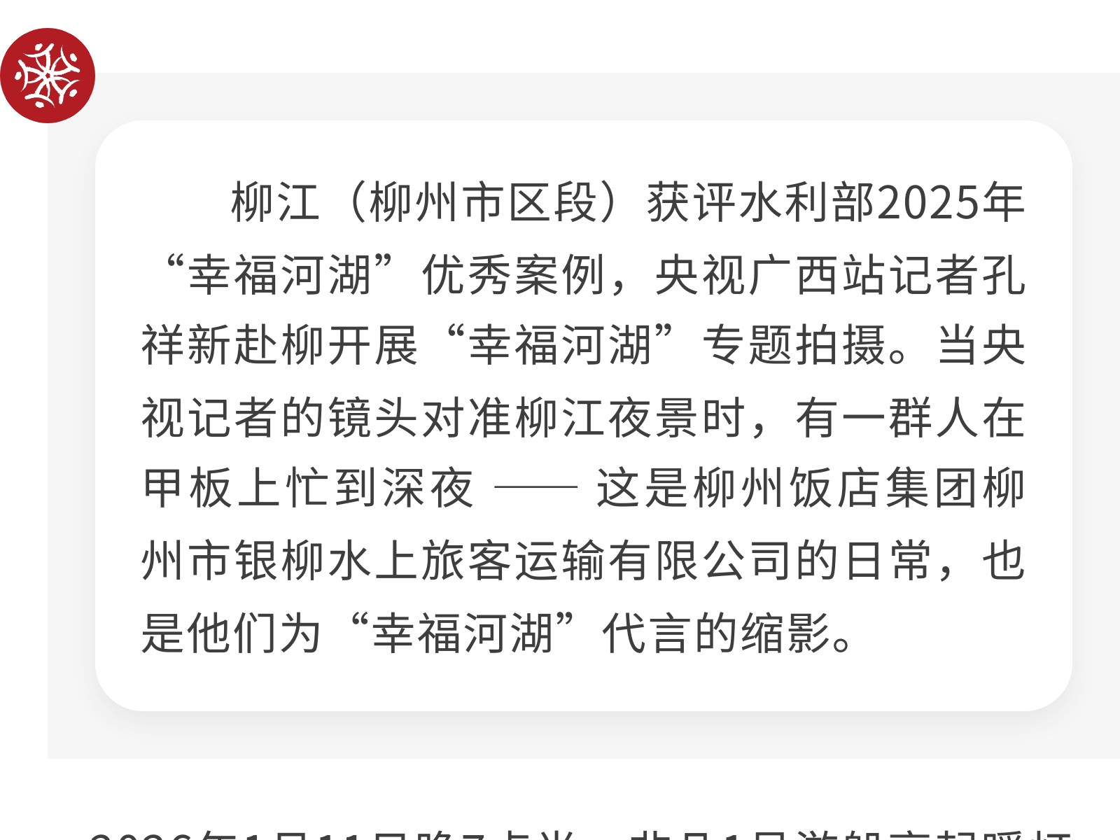 央视镜头柳江美,银柳水上暖心扉