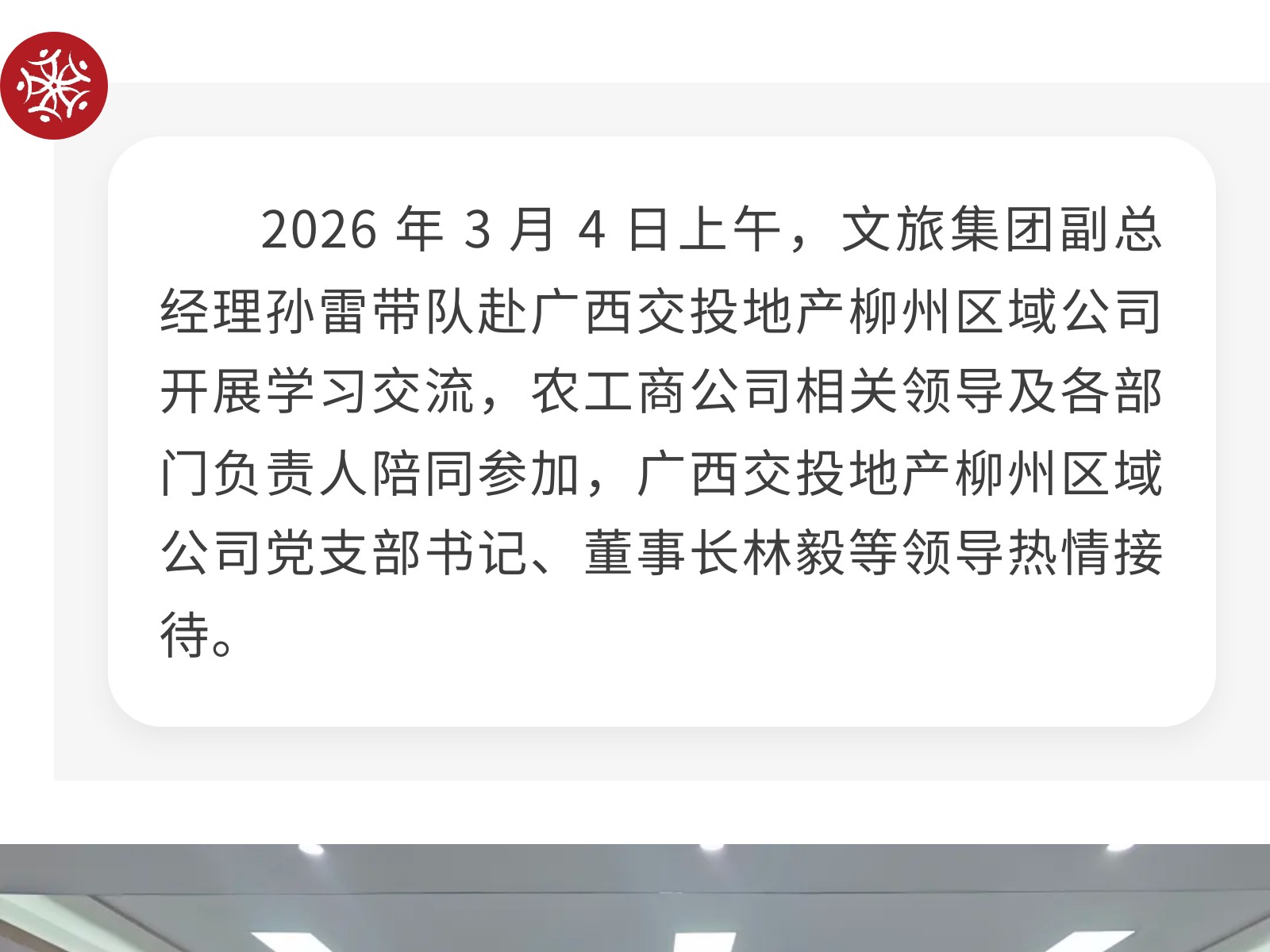深化交流谋合作 携手共赢促新局——文旅集团副总经理孙雷带队到广西交投地产柳州区域公司开展学习交流