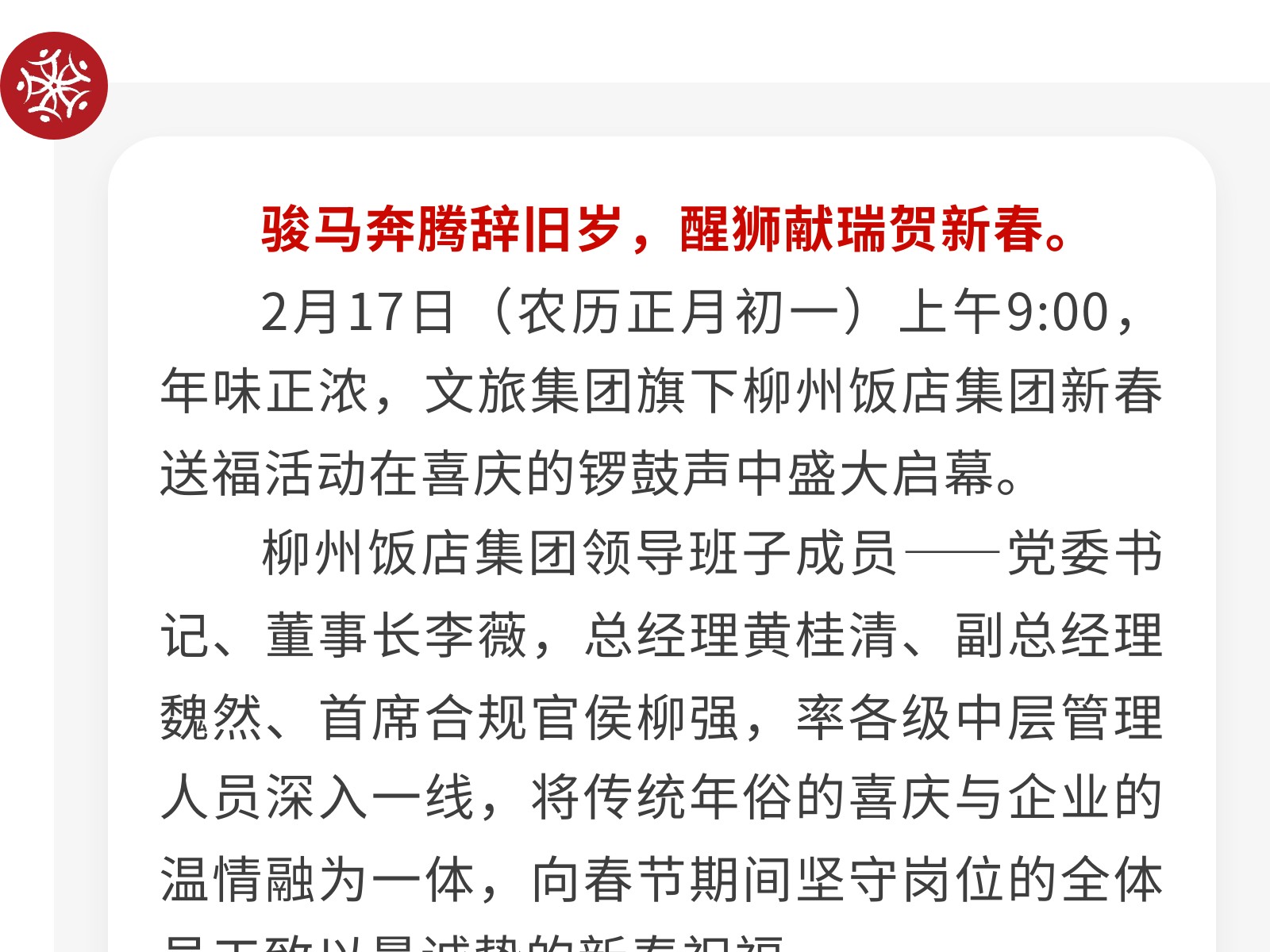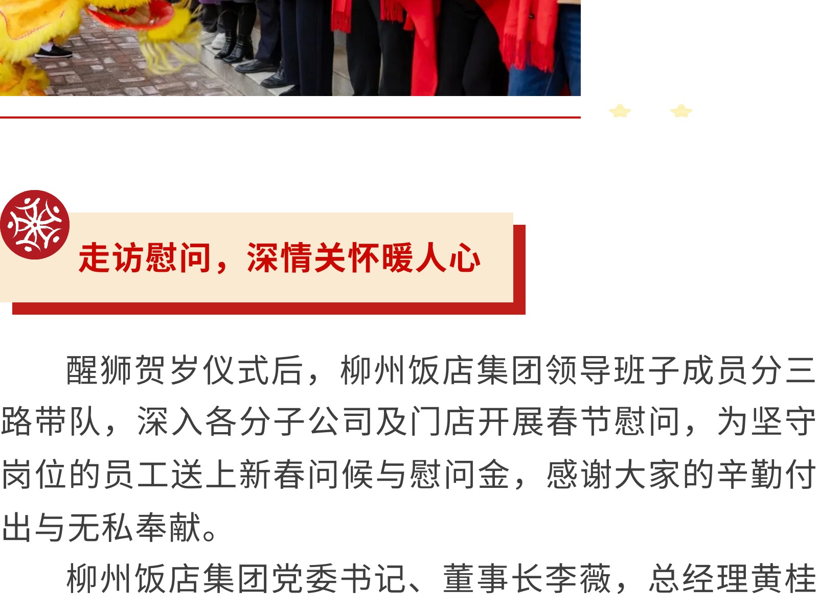 龙腾狮跃贺新春,情暖一线送福至——柳州饭店集团开展2026年新春送福慰问活动