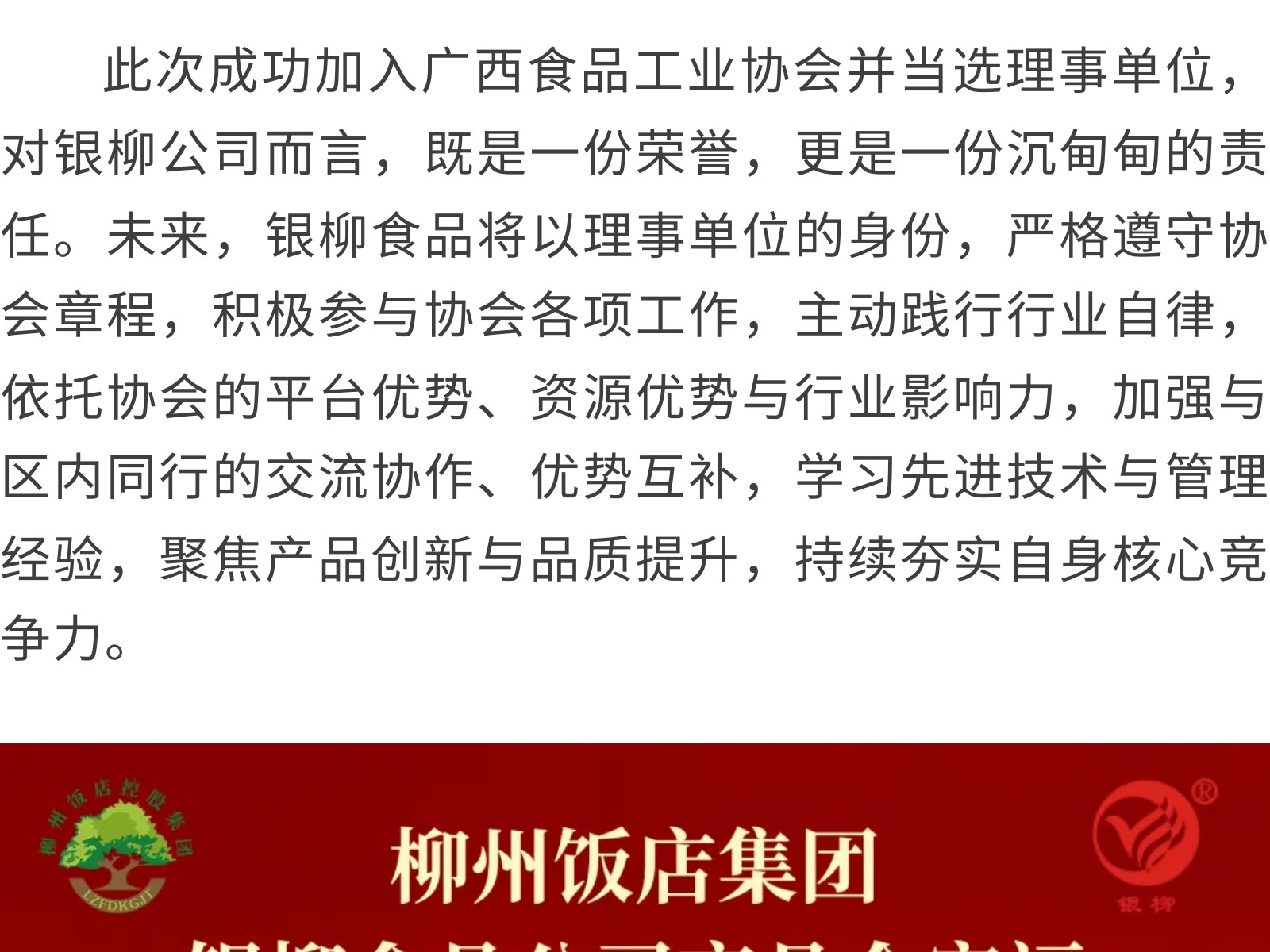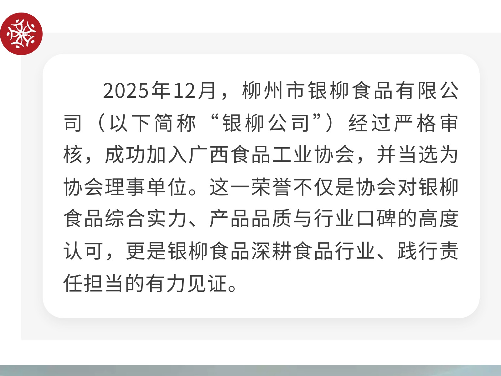 凝心聚力启新程、勇担使命向未来——柳州市银柳食品有限公司当选广西食品工业协会理事单位